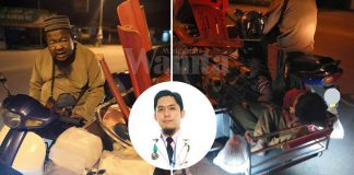 2 Budak Itu Lena Berhimpit Longgokan Barang, Atas Motor Roda Tiga