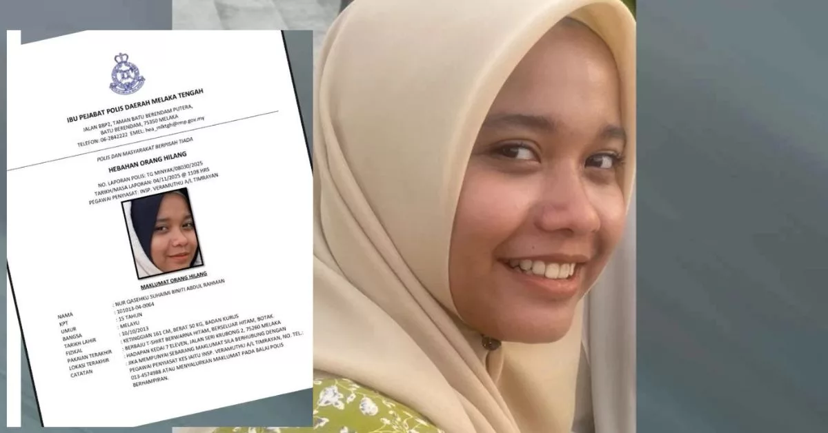 Pihak polis sedang mencari bantuan masyarakat bagi menjejak seorang remaja perempuan, Nur Qasehku Suhaimi, 15 tahun, yang dilaporkan hilang sejak lebih sebulan lalu. Kes remaja hilang Melaka ini menimbulkan kebimbangan kerana melibatkan remaja yang mempunyai masalah kesihatan mental.