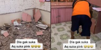 Tidak Suka Pink, Suami Nekad Roboh Dapur Warna Kegemaran Isteri