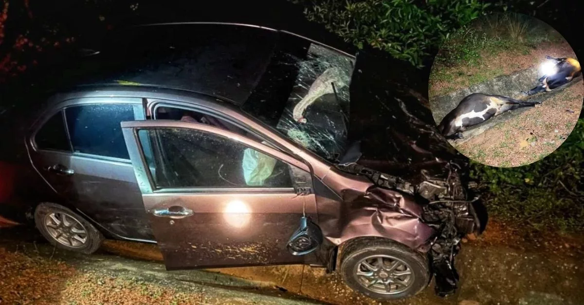 “Siasatan awal mendapati ketika tiba di lokasi, sekumpulan lembu tiba-tiba keluar dari arah kiri ke kanan jalan menyebabkan pemandu hilang kawalan sebelum melanggar haiwan berkenaan dan terbabas ke bahu jalan,” katanya dalam kenyataan hari ini. Kejadian kereta rempuh lembu itu berlaku dengan pantas tanpa sempat pemandu mengelak.