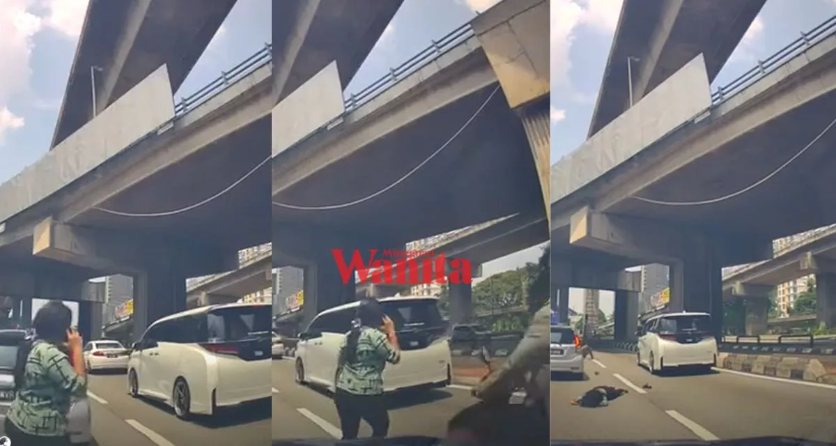 Dalam beberapa minit sahaja, wanita itu terus terbaring selepas dilanggar oleh sebuah motosikal yang lalu di jalan yang sama.